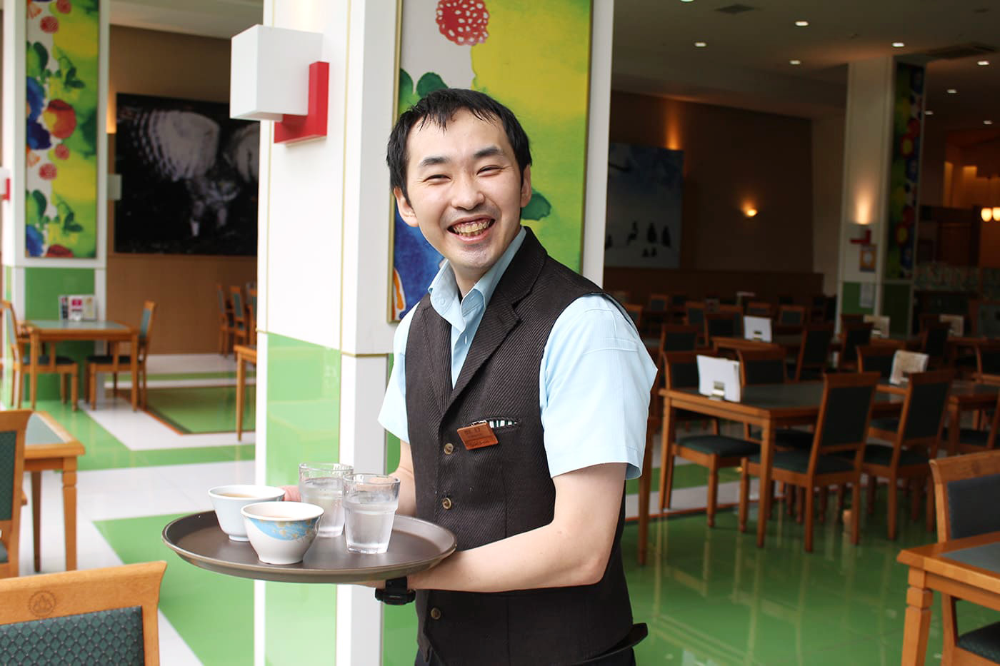 レストラン・宴会場・お食事処等での接客対応、会場設営などを行います。